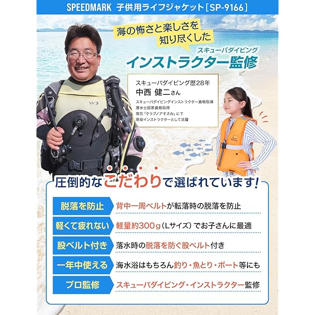 商品名:【インストラクター監修】 ライフジャケット 子供 子供用 キッズ 釣り ジュニアフローティングベスト ((標準タイプ)オレンジ, L)