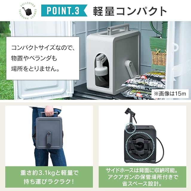 アイリスオーヤマ(IRIS OHYAMA) ホースリール 10m フルカバー仕様 蛇口ジョイント付 水形切替機能付 持ち運びしやすい持ち手付き FCH-10M ダークグレー