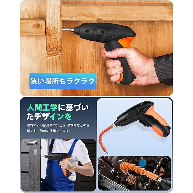 「コードレス設計で快適な作業を実現」USB充電式の電動ドライバーは、電源のない場所でも気軽に利用可能です。バッテリーの持続時間は120分以上と長く、作業効率を向上させます。アウトドアやリフォーム作業など、さまざまな環境での使用に最適な選択肢です。