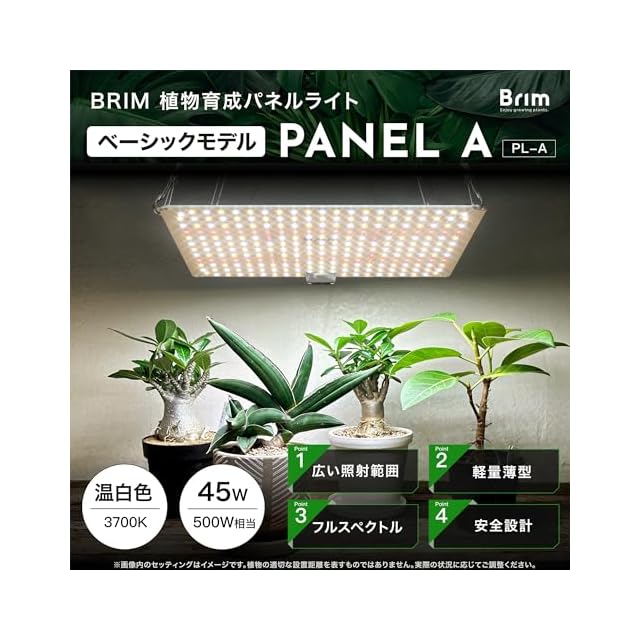 商品名:【公式】BRIM(ブリム) PANEL A 植物育成ライト LED パネル 【国内ブランド】フルスペクトル IR/UV 搭載 PL-A (1, 45W 温白色)