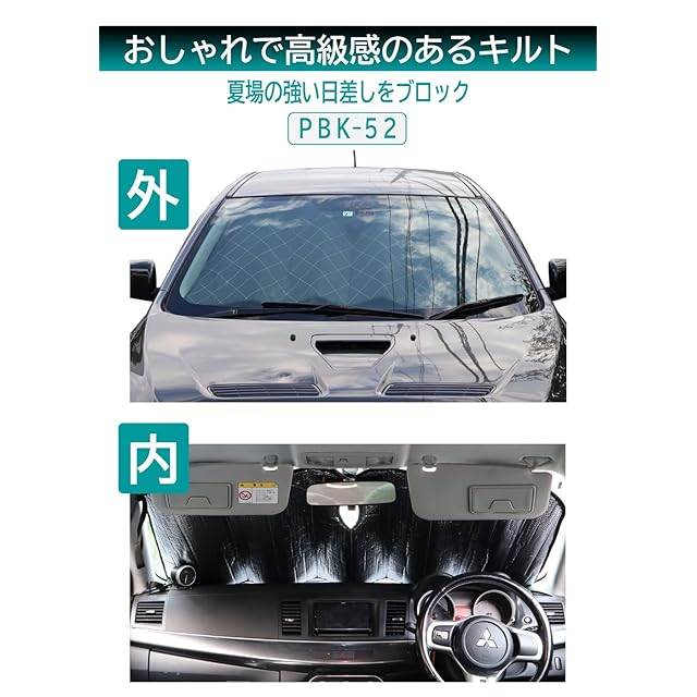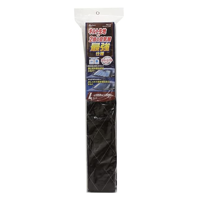 商品名:メルテック(meltec) 車用 日よけ フロントサンシェード キルトシェードDX リバーシブルタイプ Lサイズ 約1350(W)×800(H)mm meltec 3層構造 消臭 抗菌 ブラック&シルバー PBK-52