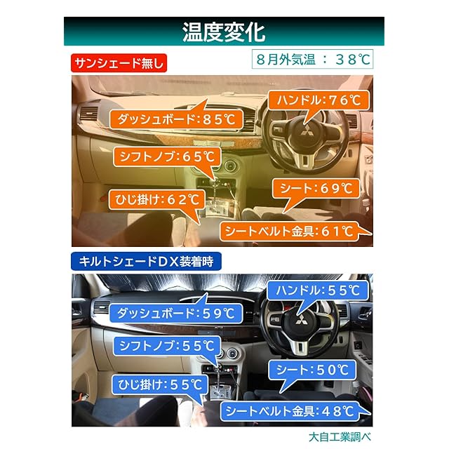 メルテック(meltec) 車用 日よけ フロントサンシェード キルトシェードDX リバーシブルタイプ Lサイズ 約1350(W)×800(H)mm meltec 3層構造 消臭 抗菌 ブラック&シルバー PBK-52