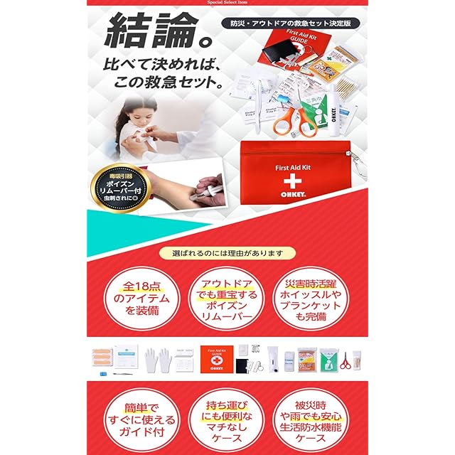 商品名:【防災士監修】OHKEY 救急セット ファーストエイド キット ポイズンリムーバー 登山 アウトドア 防災 救急箱 小型
