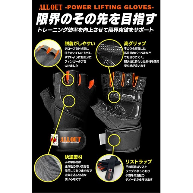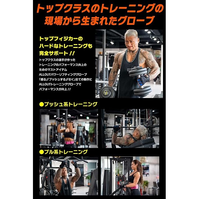 トレーニングギアブランドALLOUTよりトレーニンググローブがNEWリリース。従来のトレーニンググローブの弱点を完全克服。トップフィジカーの監修の基、人体工学に基づいて開発されたトレーニンググローブ。強力なグリップ力を発生するだけでなく、高重量のトレーニングパフォーマンスを向上させるためにリストラップを装着。使用中に手首が痛くならず、快適に利用することができます。耐久性が強く、摩擦・摩耗性に優れた特殊ノンスリップラバー生地を採用し、高いホールド力を実現しました。ALLOUTトレーニングギアはALLOUトレーニングギア専門店のみの販売となっております。類似商品が出回っておりクレームが届いております。ALLOUTトレーニングギアのご購入は公式ショップかどうかお確かめになられてからご購入ください。公式ショップ以外でのご購入は対象外なります。