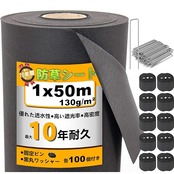 商品名:防草シート 除草シート 防そうシート 防草シート 不織布 防草 シート 高密度130g/㎡ 8年 - 10年耐久 固定ピン100本と黒丸100枚付き 雑草防止シート 不織布 厚手 高透水性 高耐久 UV耐候剤配合 親水剤入 (1×50m, ブラック)