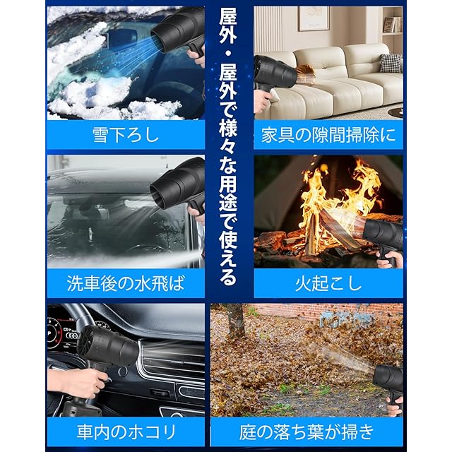 【2025年新型モデル】コードレスブロワー 組立不要、軽量化、ターボチャージャー搭載により、風速がより速く・強く・効率的になり、落ち葉や積雪の除去に最適です。 ※ご注意:最適な使用距離は2メートル未満です。これを超えると風力が弱まり、対象物を動かす効果が低下する可能性がございます。また、強力な風量のため、使用中は大きな騒音が発生する場合がございますので、耳栓を持って行ったほうがいいですよ。