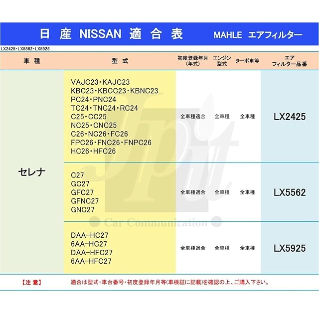 適合車種 : 日産 : セレナ C27系 ハイブリッド車含む : 型式 C27/GC27/GFC27/GFNC27/GNC27