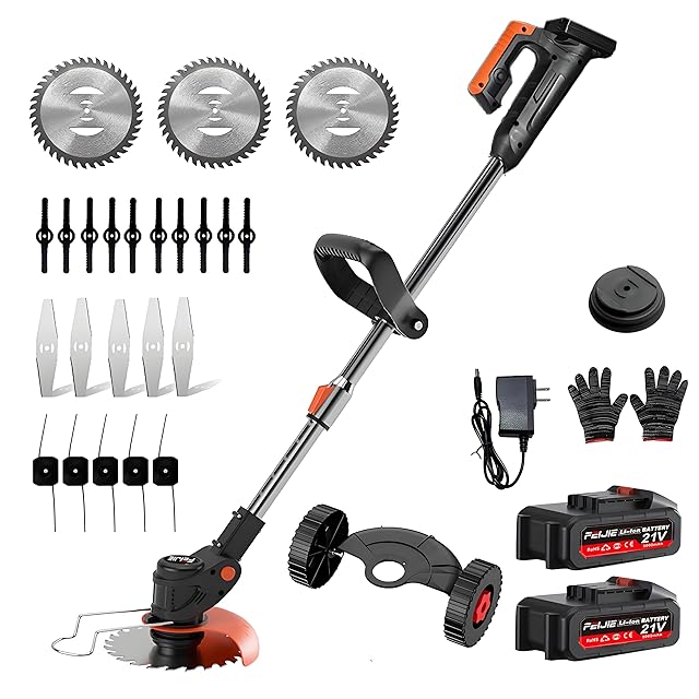 商品名:最新型 電動草刈り機 充電式 人気 草刈機 電動コードレス軽量1.8kg 草刈り機 バッテリー式 伸縮 角度調整 雑草取り器具 枝切り 芝生 畑 雑草 植木 刈払機 日本語取扱説明書付き 4種替刃 可用金属鋸刃とナイロンカッター 2000mAh 大容量バッテリー PSE認証