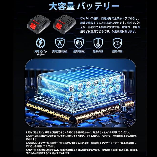 【安全、丈夫、長持ち】安全面・パワーを考慮したリチウムイオンバッテリー 連続運転が可能。 広範囲の刈り込みにも活躍!気が向いた時、待たずに使えます。電池残量があっても継ぎ足し充電可能。充電時間を節約できます。