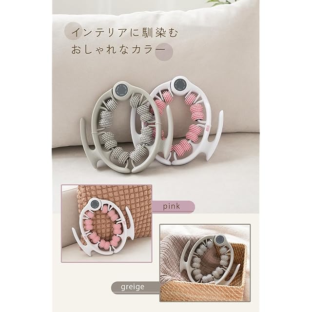 【シンプルに、選べる2色】可愛らしいピンクとインテリアに馴染みやすいグレージュの2種類のカラーを用意。お部屋に置くだけで、毎日の筋膜ケアが楽しく、スタイリッシュに。