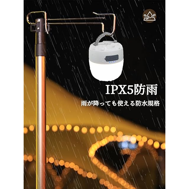 ☔【IPX5防水・360°明るく照らす】IPX5の防水機能搭載なので汗をかいたり急な雨が降っても使えます。キャンプのみならず釣りやサイクリングでも使用可能。ランプはどこに置いても全体を照らせる、使いやすい360度タイプです。ボタンは携行中の意図しない点灯を防止するボタン設計ですので、電源ボタンを2秒間長押して点灯します。ランタン ledはUSBタイプC充電式です。※充電中に電量表示インジケーターが点灯しない場合、バッテリーが過度放電保護モードに入った可能性があります。この場合、1時間ほど充電し続けてバッテリー電圧を3.7V以上に上げると、充電状態が表示されるようになります。PD規格の充電ケ一プル(タイプC to タイプCケーブル)は対応不可。明るさは260ルーメンです。