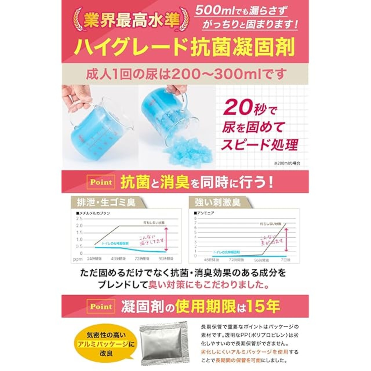 ✅【女性の嬉しい備え】災害時にあれば安心という多くの女性の声をもとに「使い捨てパンツ」と「ポケットティッシュ」を追加しました。使い捨てパンツは厚手で透けにくく水にも強い素材。災害時の生理の時も安心してお使いいただけます。✅【防災士監修】災害大国だからこそ、急なトラブルでも問題なく安心してお使い頂けるよう、排便袋・処理袋・凝固剤全てにこだわりました。非常時に役立つ簡易トイレです。大切なご家族を守るための備えを。 防災トイレ を備蓄して日常に安心を。✅【 「吸水力」「消臭性」を兼ね備えた高性能凝固剤を採用! 】トイレの女神は高性能凝固剤を採用!ハイグレードの凝固剤採用で安心してご使用頂けます! また劣化しにくいアルミ製のパッケージを使用することで長期保管することを可能にしました。✅【備蓄に最適!15年間の長期保管が可能! 】凝固剤には劣化しにくいアルミ製のパッケージを採用することで長期保管を可能にしました。✅【取付はたったの20秒】トイレに被せるだけの簡単取付なので、ストレスなく簡単にお使いいただけます。災害用トイレとしてだけでなく、携帯トイレとしてトイレにすぐにいけない場合にも活躍します。介護の際にもお使い頂ける簡易トイレです。【重要なお知らせ】本製品の凝固剤は、製造日から15年以上の保存が可能です。そのため、お手元に届いた時点で、製造日からの経過により使用期限が15年未満と表示されている場合がございますが、ご安心ください。実際には15年以上のご使用が可能です。