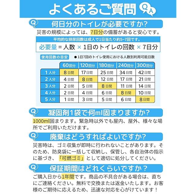 ✅【長期保存可能で環境にも優しい】BestBayの簡易トイレは、製造日から15年以上の長期保存が可能です。アルミパッケージで劣化しにくく、災害備蓄に最適!使用後のゼリー状廃棄物は可燃ごみとして処理でき、環境負荷を低減する設計となっています。防災備蓄と地球環境保護を両立させた安心の製品です。