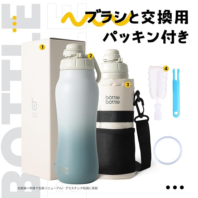 商品名:BOTTLE BOTTLE 水筒 750ml ストラップ付き ウォーターボトル 洗いやすい 持ちやすい 0.75L スポーツボトル 保温保冷 魔法瓶 水筒ホルダー付き グレーグリーン2