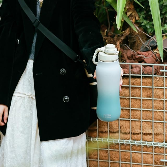BOTTLE BOTTLE 水筒 750ml ストラップ付き ウォーターボトル 洗いやすい 持ちやすい 0.75L スポーツボトル 保温保冷 魔法瓶 水筒ホルダー付き グレーグリーン2
