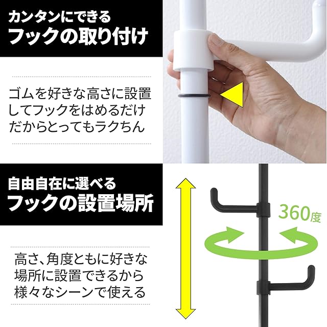 商品名:山善(YAMAZEN) 突っ張り ラック ポールハンガー 全体耐荷重30kg ワンタッチ突っ張り (実用新案取得済) 高さ190-260cm コートハンガー 玄関収納 一人暮らし 子供部屋 組立品 マットホワイト WJ-725RM(MWH) シングル