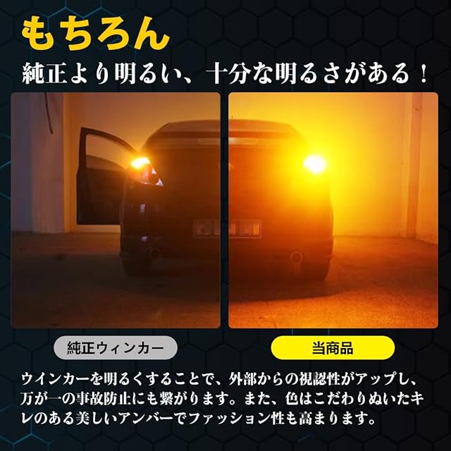 型番:t20シングルバルブ<br>色:アンバー<br>ワット数:21W(片方)<br>ルーメン数:600lm(片方)