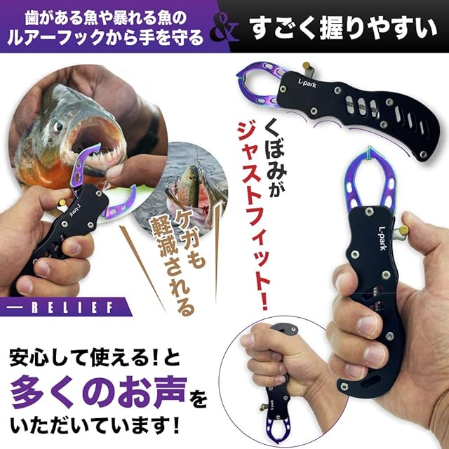 【自信があります!!】口コミから生まれた自信の商品です。初心者から上級者まで 魚釣り道具 として1つは持っておきたい フィッシュプライヤー とフィッシュグリップのセット販売です。様々な方々の意見を調査し納得いく商品に仕上がりました。 【釣り好きの口コミから誕生】スタッフのみではなく実際に様々な方に調査し次の点に注目しました。錆びにくく軽い 釣具・PEライン対応のラインカッター・飲み込まれた針を外しやすいく細く長め・ プライヤー が開きすぎずに使いやすい大きさ・握りやすさ。収納しやすい大きさ。バネ部分も錆に強い。これらを取り入れ、こだわりぬいた商品 です。是非お試しください。 【6役のアルミプライヤー】スプリットリングオープナー スプリットリング#2~#6対応 / 針外し / ガン玉潰し / スリーブ潰し / ねじ外し / ラインカッター PEライン対応。 釣り具 は道具が増えて荷物が重たくなりがちです。1つの 釣り用ペンチ でまとめて荷物もなるべく軽くして挑めます。 釣具 小物 【アルミ製フィッシュグリップ】ネジやバネまで錆に強い サビずらさを謳っていても、バネが錆びては意味がありません。当店の 魚掴み フィッシュキャッチャー は全ての部品もサビにくいステンレスやアルミを使用しておりますので 海釣り でも長く 使用できます。耐重荷30kg。 【使用環境】 釣り セット 海釣り 池釣り バス釣り ルアー 外し 沖釣り 船釣り ランガン、サビキ釣り、穴釣り等 さかなつかみ さかなばさみ ルアーフィッシング ブラックバス シーバス カラビナ付きの さかな掴み と ペンチ で使いやすく収納ケースも付いていて更に大きすぎず、場所をとらない 釣具 です。