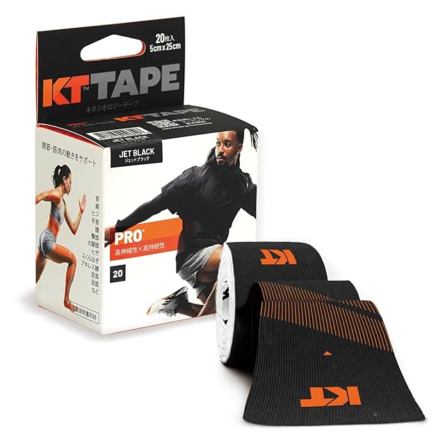 商品名:KTテープ(KT TAPE) キネシオロジーテープ(伸縮性 はく離紙付) KTPR20/JBPRO20 ジェットブラックプレカット(5cm×25cm) 20枚入り ハサミ不要 全部位対応 フリーサイズ