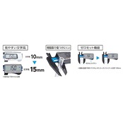 文字高15mmで見やすく、比較測定、間接測定ができるゼロセット機能付です。
