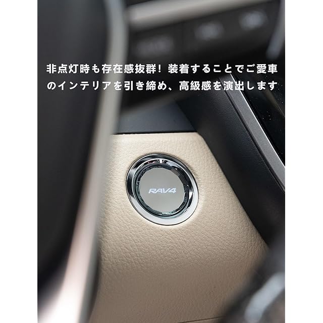 【特徴】このRAV4車に適用するスタートボタン スイッチカバーはクリスタル表面処理で文字部分はくり抜きになっているので純正のLEDはそのまま光ります。 スターターリングが非点灯時も存在感抜群!装着することでご愛車のインテリアを引き締め、高級感を演出します。