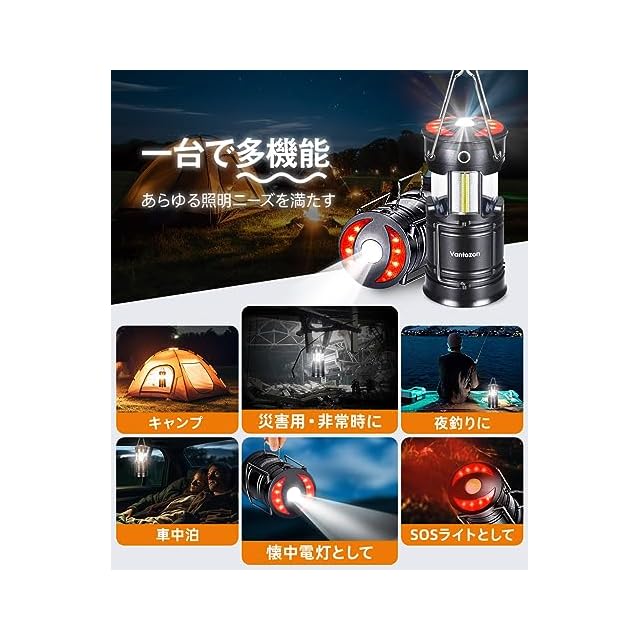 商品名:【2024革新モデル・1台多役】 ランタン led 高輝度 ledランタン 充電式 電池式 防災 キャンプ 軽量 防滴仕様 夜釣り 登山 防災 懐中電灯機能 防災グッズ 停電 緊急 非常用 電池式ラン SSOS点灯モード 折り畳式 持ち運び便利 (ブラック)