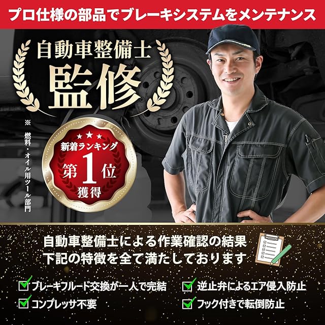 ✅【優れた安定性】フック付きで作業中にタンクが転倒し、ブレーキフルードが飛散する心配はございません!