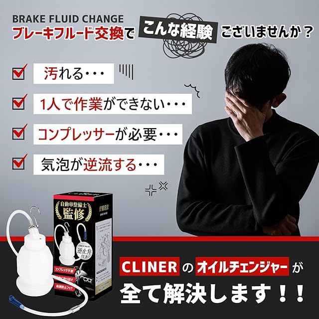 商品名:ブレーキブリーダー ブレーキフルード交換 【自動車整備士 監修】 ワンウェイバルブ 逆流防止弁 ブレーキオイル交換 ワンマンブリーダー オイル処理箱 逆止弁 エア抜き CLINER
