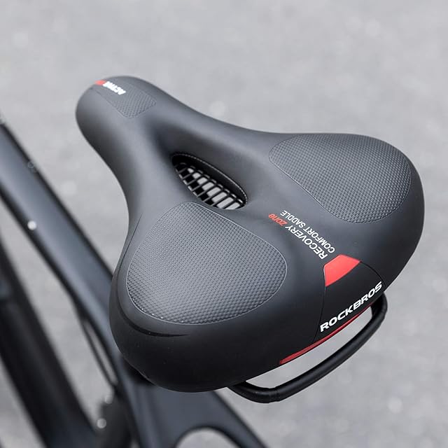 ROCKBROS(ロックブロス)自転車 サドル 超肉厚 痛くない 低反発 サドルクッション 衝撃吸収 穴開き 通気 ソフト 防水 バック反射テープ クロスバイク マウンテンバイク ママチャリ (レッド)