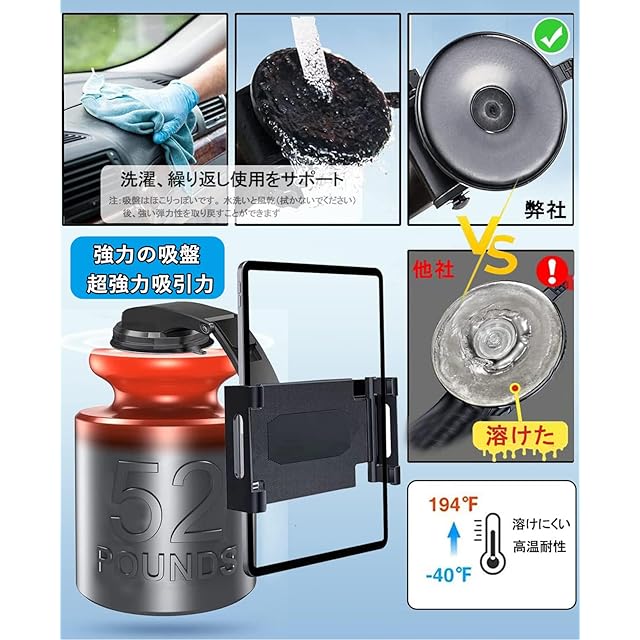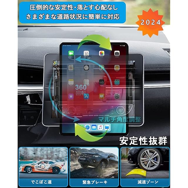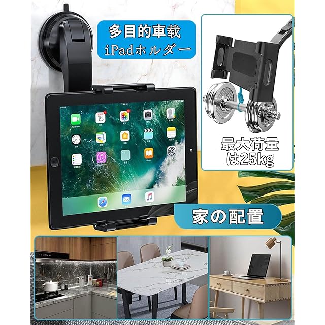 商品名:タブレットホルダー 車載 吸盤式 [2025新登場] スマホホルダー 車 ダッシュボード用 超強力粘着ゲル+真空吸盤 ipad 車載ホルダー 360度回転 安定性 転落防止 防振 自由調節 伸縮アーム 取り付け簡単 5.5~11インチ全機種対応 日本語説明書付き