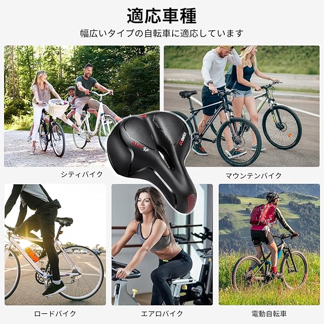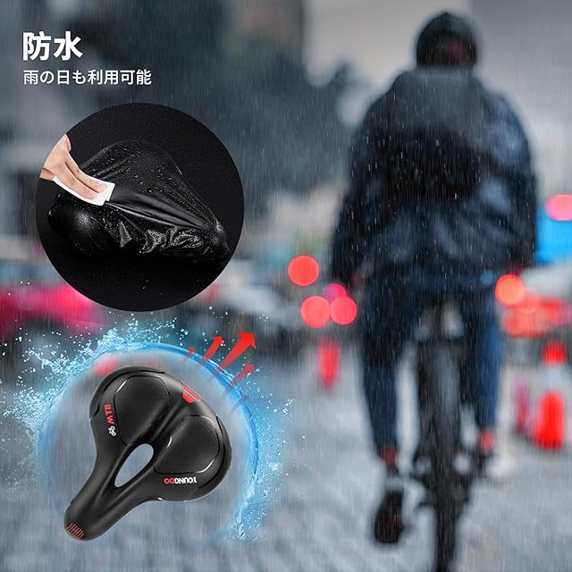 ★【高いクッション性】 クッション性に優れた低反発の衝撃吸収材を使用し快適な乗り心地をします。 また、ダブルスプリングゴムボールが付いておりサドル本体のクッション性に加えスプリングで路面の衝撃を吸収し柔らかい着座感で安定した走行を実現します。耐摩耗性の高い滑り止め防水PUを表面に採用し、内側を人工脂肪ゲル層で構成することで高い防水性と耐久性を同時に実現しています。