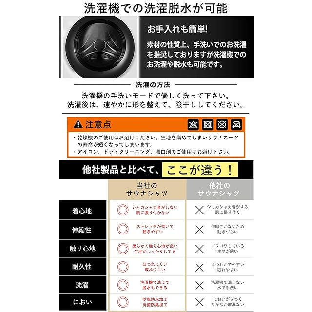 【特殊生地による発汗力】特殊素材をウェアの内側にコーティングした生地によって高い抗通気性、高保温性、優れた伸縮性を実現しました。それにより運動による体温上昇をしっかりと保温することで、より多く発汗を促します。 運動前のウオームアップや減量中の方などにオススメです。