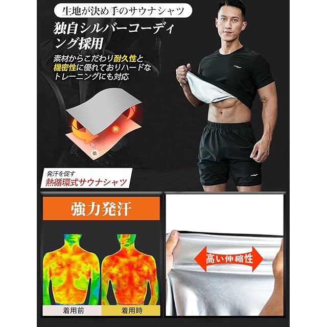 商品名:[シュアナウ] サウナシャツ 半袖 メンズ サウナスーツ ヒートシャツ 発汗 インナー ダイエット スポーツウェア ランニングウエア 洗濯可 減量用 ウォーキング 脂肪燃焼 大きいサイズ