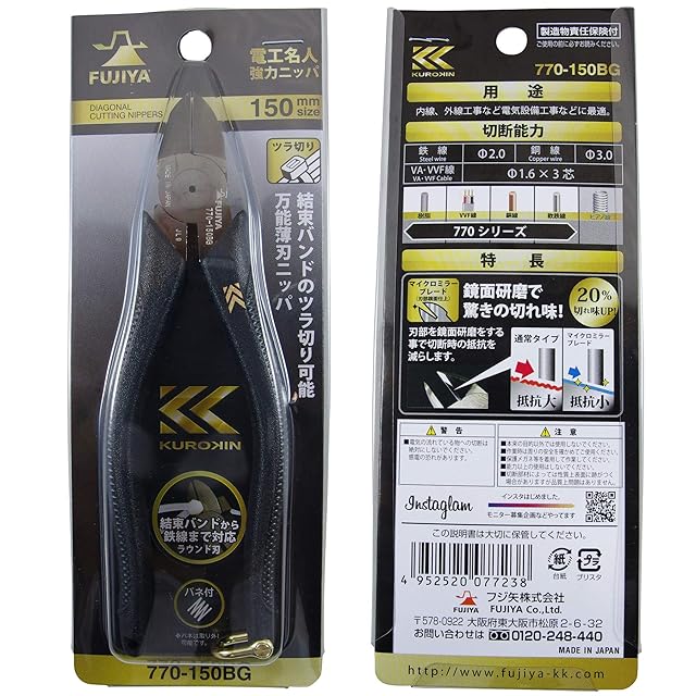 商品名:フジ矢(Fujiya) 電工名人強力ニッパ 150mm ラウンド刃・黒金 770-150BG