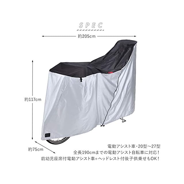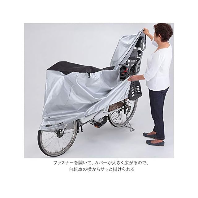 商品名:川住製作所(Kawasumi Seisakusyo) 自転車 サイクルカバー(アシスト車対応ファスナー式) KW-389AS/BK LLサイズ ブラック/シルバー