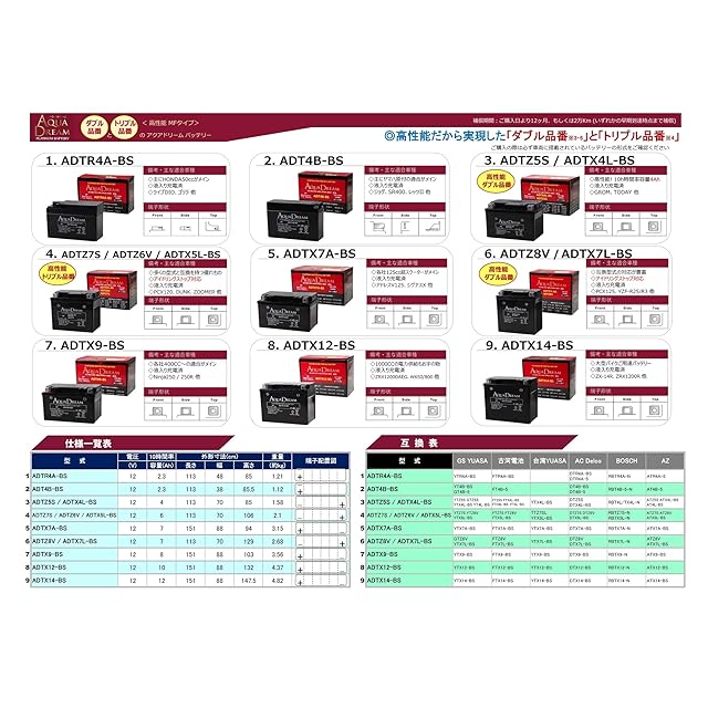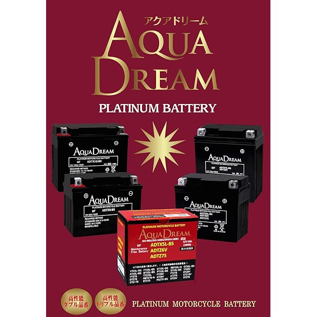 アクアドリーム バイク用 バッテリー 液入充電済 MF ADTX5L-BS/ADTZ6V/ADTZ7S (12V/6Ah/互換/YTX5L-BS/YTZ6V/YTZ7S)