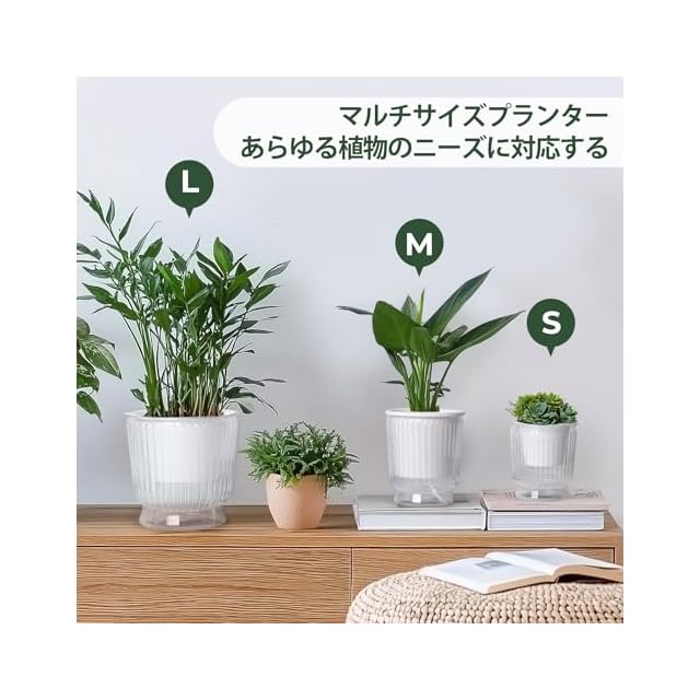 「耐久性のある素材」給水プランター は優れたプラスチック素材で作られており、暑さも寒さにも強く耐久性があります。透明な花ポットは水位を確認しやすく便利です。底面給水鉢は、リビング、キッチン、浴室、ダイニングルーム、デスク、窓辺などの屋内外で使用できます。