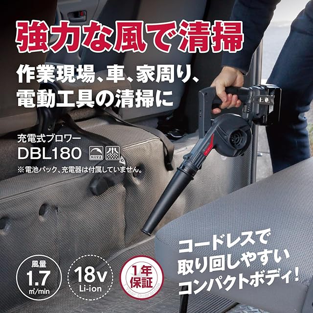 京セラ(Kyocera) 旧リョービ プロ用 充電式ブロワー 本体のみ(電池パック・充電器別販売) DBL180 681851A ブラック 【作業に合わせ風量・風速の調節が可能】 作業現場・車・家周り・電動工具の清掃に リチウムイオン18V 風量0~2.3m3/min 最大風速0~17.2m/s 連続使用時間35・49分