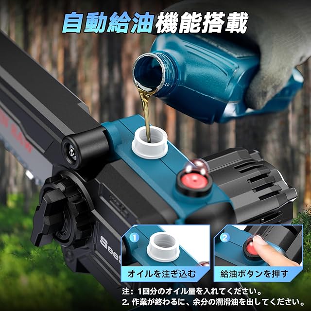 【2025 年最新版、便利なチェーン調節ネジ&油さし付き電動チェーンソー】❶便利なチェーン調節ネジ。本製品のチェーン調節用のネジが改良されました。チェーンの長さを調節する際、ドライバーを使う必要がなく、手でネジを回転させるだけでチェーンの長さを調節できます。➋給油機能を搭載し、よりスムーズで効率的な切断を提供します。チェーン:36 コマ。替え刃 ASIN:B0D7ZKDZST