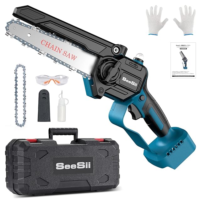 商品名:【2025新型】SEESII チェーンソー 充電式 電動チェーンソー ハンディチェーンソー ハンドミニチェーンソー 6インチ コードレス 電動のこぎり 工具レスチェーン調整 軽量 小型 竹切り 木工切断 枝打ち 薪作り マキタ 18Vバッテリー対応 【本体のみ バッテリー別売り】