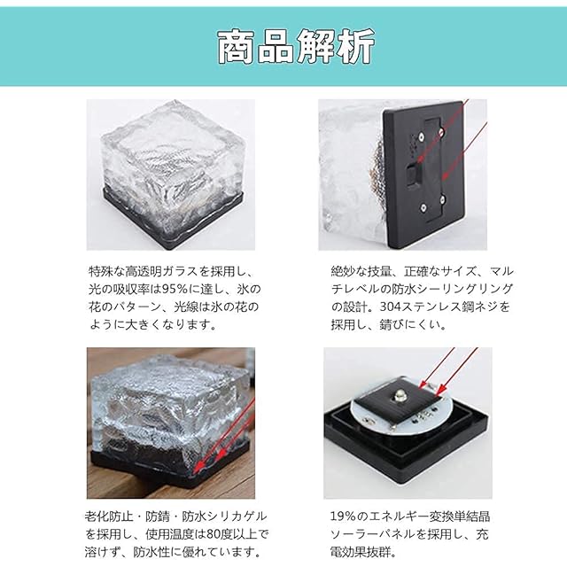 適用場所:ガーデン、玄関先、庭先、芝生、公園、車道、歩道防犯照明などの屋外照明とデコレーションに理想的な選択です。 ※注意:使用方法:初めて使用時、底面の黒い防水ボタンを押して、 そうするとonになる。(日中に点灯するか確認できない場合は、暗い環境でお試しください)、太陽の当たる場所に置くと、夜間は自動的に点灯します。★商品の品質には万全を期しておりますが、万が一商品に不具合があった場合やご満足いただけなかった場合、【お問い合わせメールアドレス:「注文履歴」>「注文に関する問題」>「プロフィールを表示」>「質問する」。 】のプロセスを経て弊店にご連絡ください。
