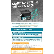 【MAKITAバッテリー対応】本製品は18Vのマキタバッテリーで駆動します。純正のバッテリーはもちろんのこと、各種互換バッテリーでも使うことができるので、MAKITAの掃除機や工具などをお使いの方ならすぐにご使用いただけます