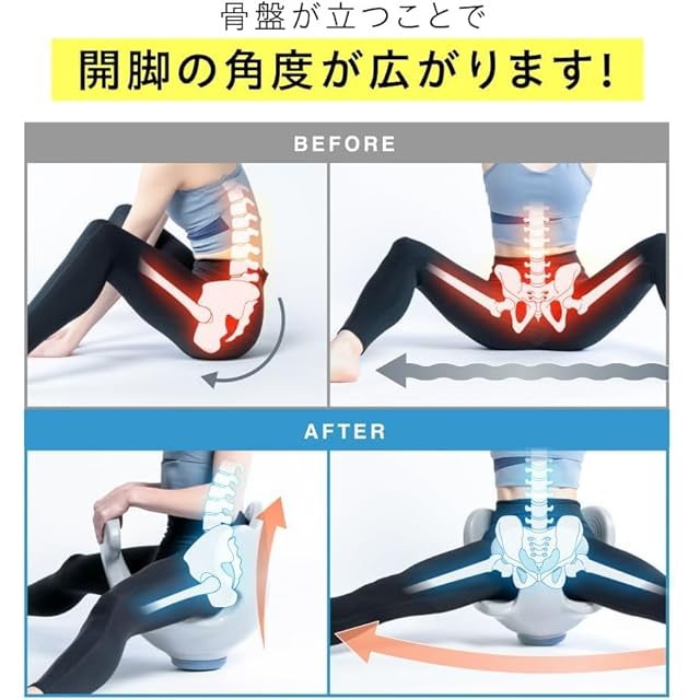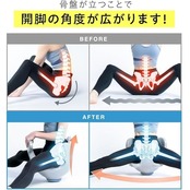 簡単開脚チェアで、ゆがみのないまっすぐなカラダへ。 美しい姿勢で、歩行も軽やか!肩・腰・背中スッキリ。ヨガ講師監修の骨盤ケアアイテム。 姿勢が悪く猫背になってしまう…慢性的に腰の負担を感じる…そんな方に! 骨盤の歪みからくるカラダの不調を整える「ヨガバランス開脚チェア」。 難しい開脚ストレッチを簡単に! 座ってゆらゆら360°揺らすだけ!自重で楽々開脚ストレッチ。 さらにバックサポートがストレッチハンドルを押すのと連動して、背中を押す働きをしてくれます。 開脚ストレッチによって内転筋がほぐされ、カラダのバランスを司る骨盤を補整。スッキリ美姿勢へ導きます。
