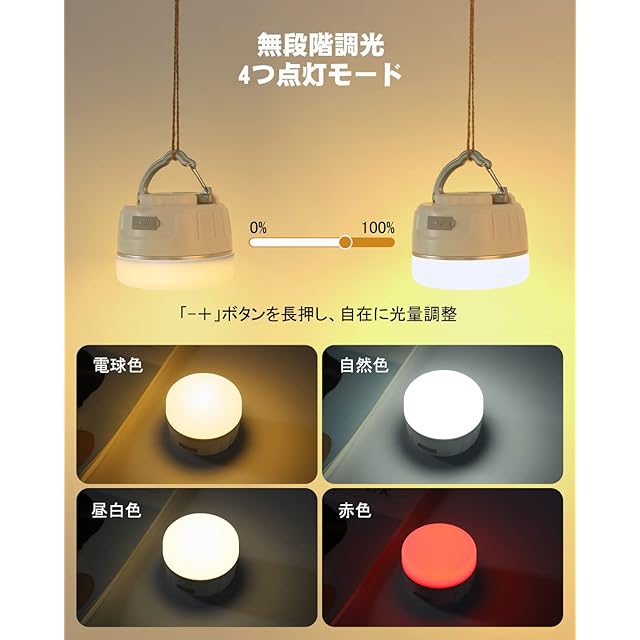 商品名:[JOYOUS] ランタン LED ランタン Type-C 充電式 リモコン付き 小型 IP65防水 暖色 光色輝度記憶 無段階調光 4色切替 吊り下げフック・マグネット式付き アウトドア携帯キャンプ用品 防災 あかり 停電時用 【実用点灯8-250時間】 (白)