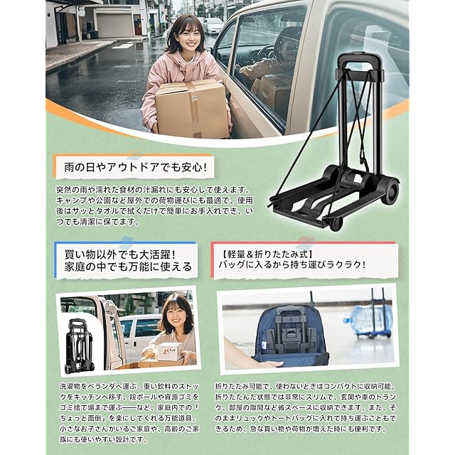 商品名:GOODCHI キャリーカート 折りたたみ式 台車 小型 軽量 超コンパクト 耐荷重50kg 固定ロープ付き 買い物 家庭用 キャリーワゴン ミニ (ブラック)