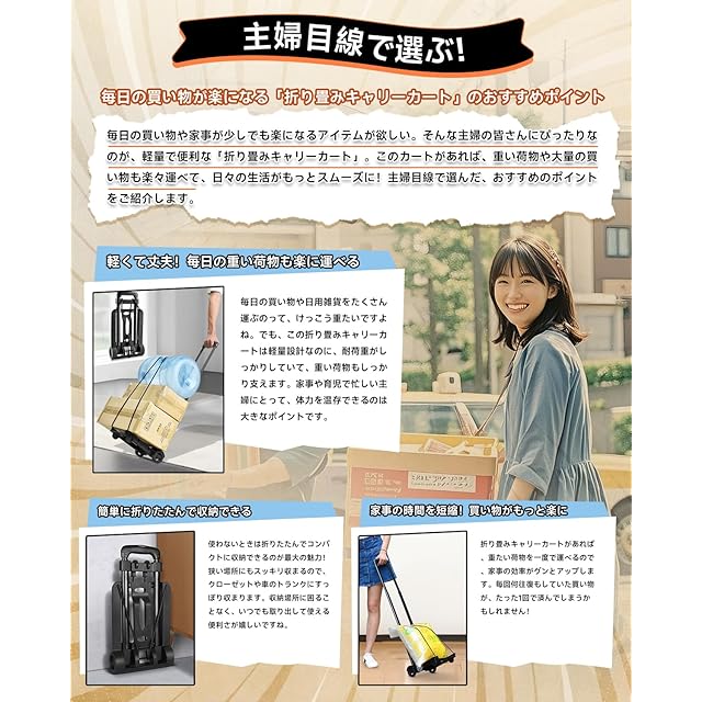 【便利な折りたたみ式】荷物が多い時に便利な折りたたみ式キャリーカート。折りたたむとコンパクトになり、 車のトランクやご自宅の収納にも困りません!