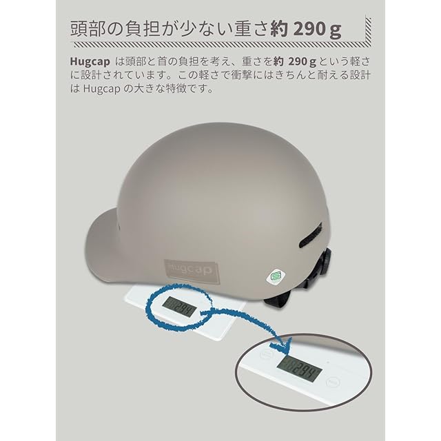 商品名:Hugcap 自転車 ヘルメット SG規格 大人 子ども 兼用 【超硬質PC素材】 ハグキャップ 学生 通学 通勤 キャップ型 帽子型 SG サイズ調節可能 実測/55.5~61.5㎝ (SG規格サイズ/58~61㎝) (グレーベージュ)