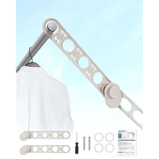 6.【設置簡単&畳み収納可能】:日本語取扱説明書が付属しており、ネジを回すだけで一人でも簡単に取り付ける、使用しない場合は、そのアームを折りたたみ、コンパクトに収納可能、ベランダのスペースを占いません。ご注意:本製品を装着する前、ぜひ注意事項を読んでください。また何の不備がありましたら、こちらにご連絡ください。弊社はできるだけ対応させていただきます。