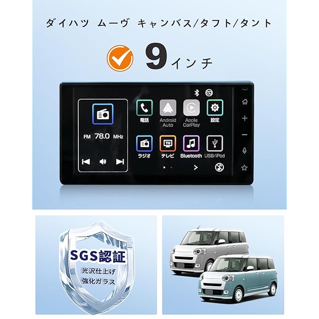商品名:BSTW ダイハツ ムーヴキャンバス カーナビ 9インチ ディスプレイオーディオ 液晶保護フィルム Daihatsu 純正ナビ タフト タント 適応 MOVE CANBUS ナビ 保護フィルム 9H 強化ガラス 指紋軽減 HDクリア 高感度タッチ キズ防止 汚れ防止 貼り付け簡単 車用 アクセサリー