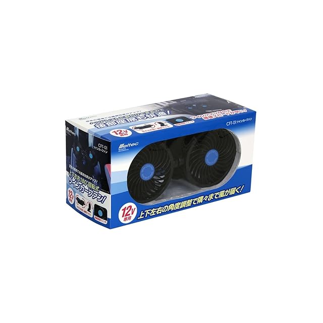 商品名:メルテック(meltec) 車載用 扇風機 ツインカーファン DC12V ヘッドレスト取付可 風量2段階 Meltec CFT-01